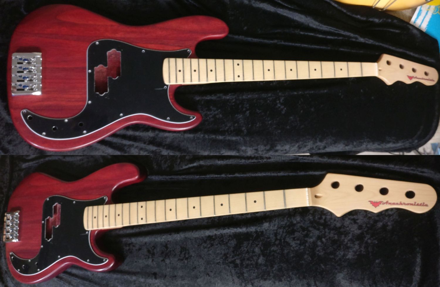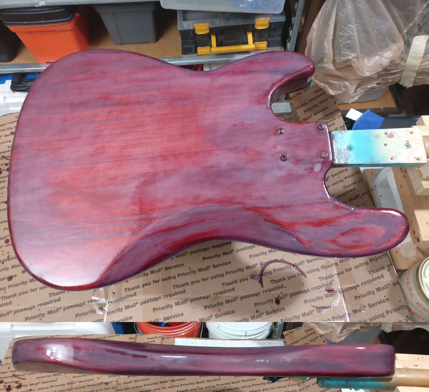 My minimum goal was to build a P-bass, with a Jazz neck that was as light as possible without being too far out of balance on my shoulder. It may achieve that. We'll see. But I think it is just going to collect dents and scratches like nobody's business. That may not keep it from being a good player, but I don't think it's going to win any awards for looks. At least I won't worry about the first scratch or dents...it's already got those.