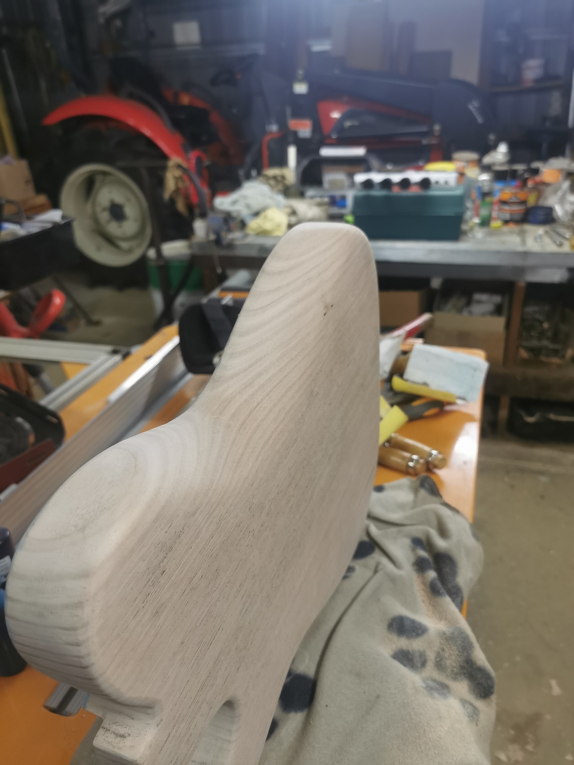 Step 2. Start by using a pissy little spoon gouge, then a crappy bowl gouge, then try some cheap BGS rasps, then just get the largest chisel and hammer you have and go absolutely ham bevel down. Finish shaping crudely with rasps to ensure you'll be hand sanding for the rest of your life.