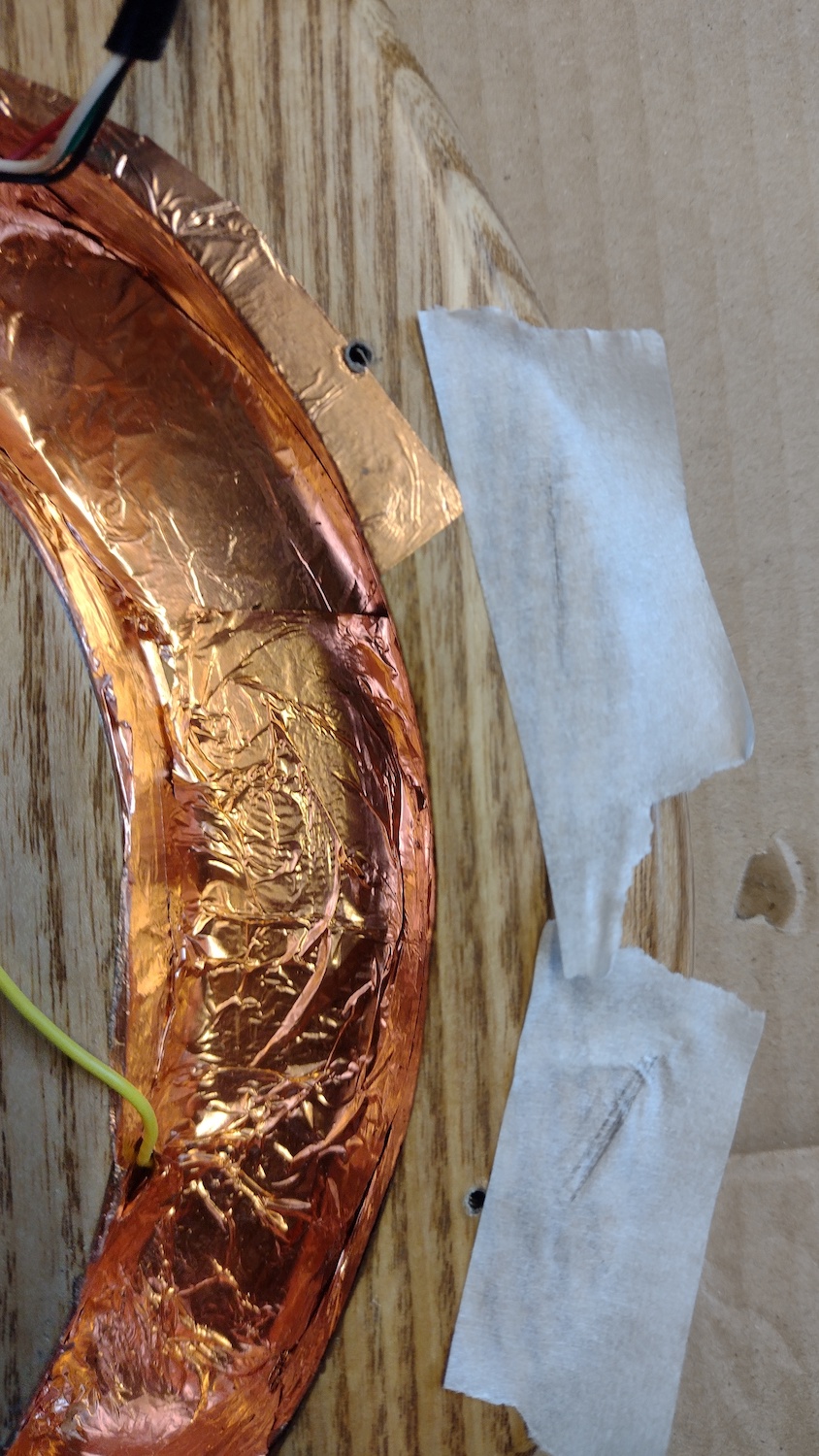 The copper tape at the bottom is still there, it's just completely covered by the ash dust.