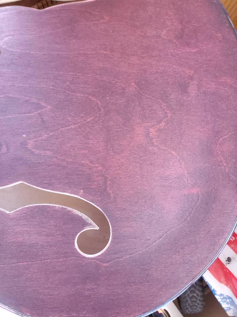 I like it. It sanded out nice and smooth with no loss of color. Time to scrape all the tiny bindings on the f-holes, then start on the neck joint and cut the headstock (On a gr-1sf?!........ yes, this one anyway...[emoji16][emoji16]).