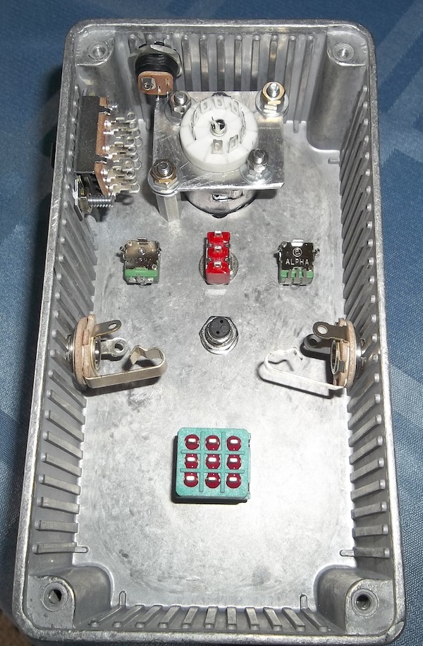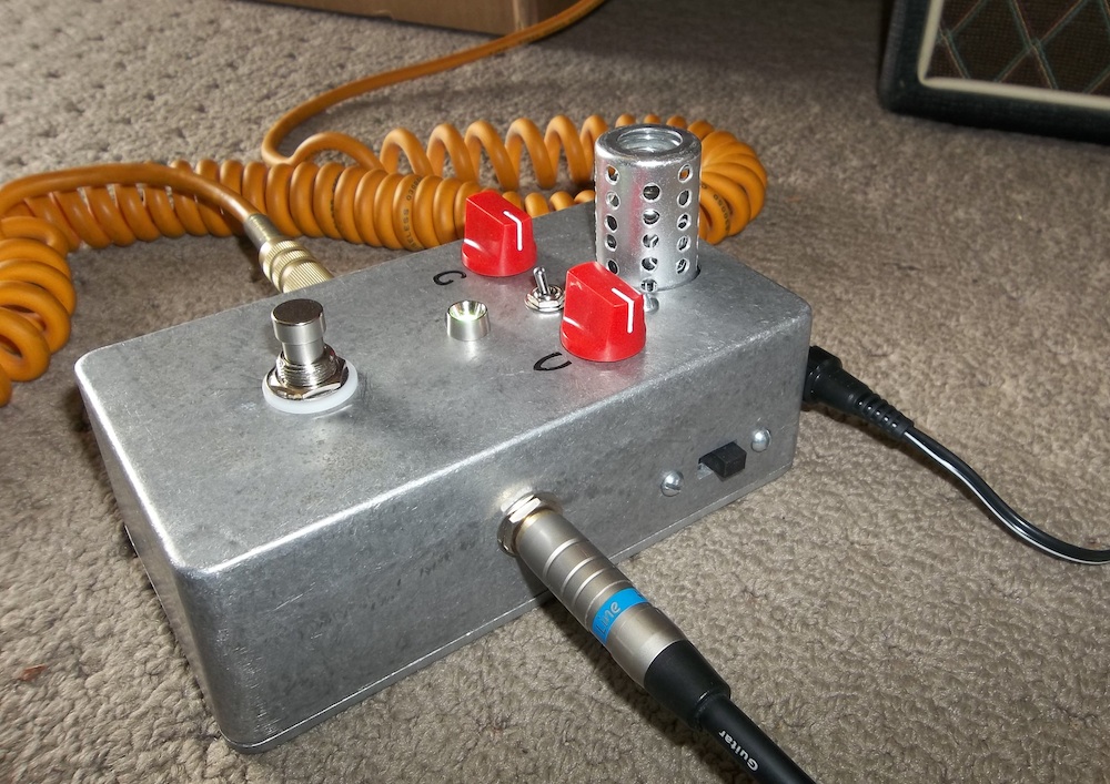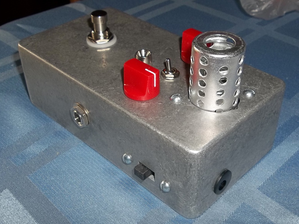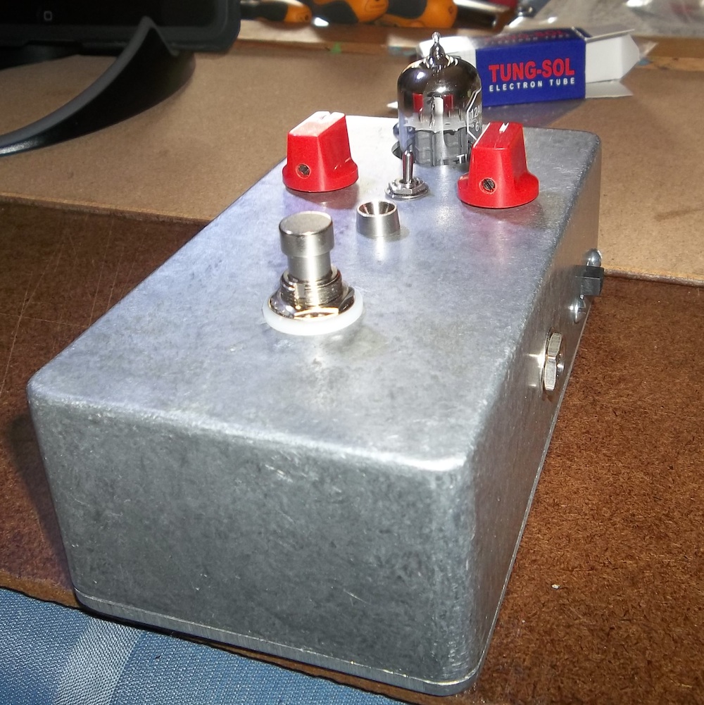 I still need to experiment with the sounds and how it changes with the voltage. It has a little less 'oomph' on 9v but the overall sound isn't that different. I've only tried it on a little solid-state amp so far, but it gave that a bit of tube-ishness which was nice. I used a 12AU7 tube like Lawry's, but may try a few alternatives when/if I get time. Thanks again for the circuit and inspiration Lawry!