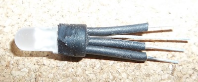 Basically, the RGB LED always has the red on and then either the blue (9v) or green (12v) is added when active giving violet and yellow-green respectively.