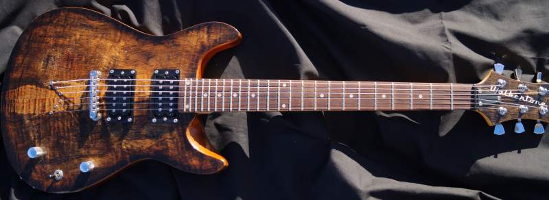 Top is fw black sanded back, then Danish oil then semi gloss wipe on poly. Back is a golden stain with semi gloss poly. Neck is tru oil, water slide decal logo and wax transfer neck logo finish her off. Attachment 2958Attachment 2959Attachment 2960Attachment 2961Attachment 2962
