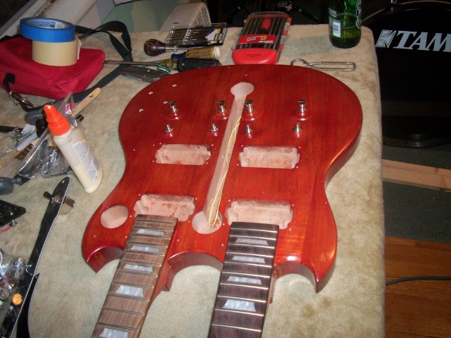 Hey guy's, I've made a bit of progress on my build and thought I might put some more pics up. So, here she is ready for spraying the headstock.