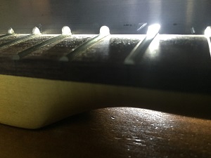 So with the home made notched straight edge and adjusting the truss rod slightly the bow in the neck was sorted.