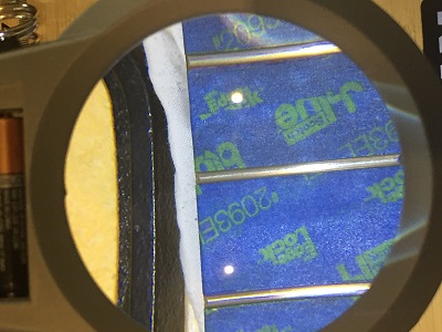 Made a leveling beam from a 25.4 x 25.4 x 1.2mm x 450 mm aluminum rod, double sided tape and select sandpaper. Followed Gav's instructions with a sharpie on the frets and leveling beam but as i don't have special tools had to crown each fret by hand with a triangular file and different grits of sandpaper, 0000 steel wool and metal polish.