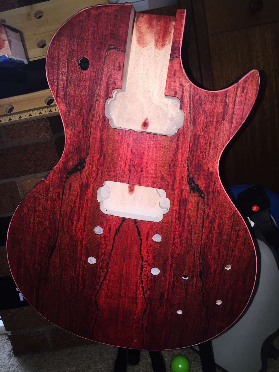 looks excellent Andy. Worth being patient with DT and wait 3 days if you can between coats. You might consider a dark brown stain for back and sides of the body, I did that on my build and it gave a nice contrast with the karijini on the cap.