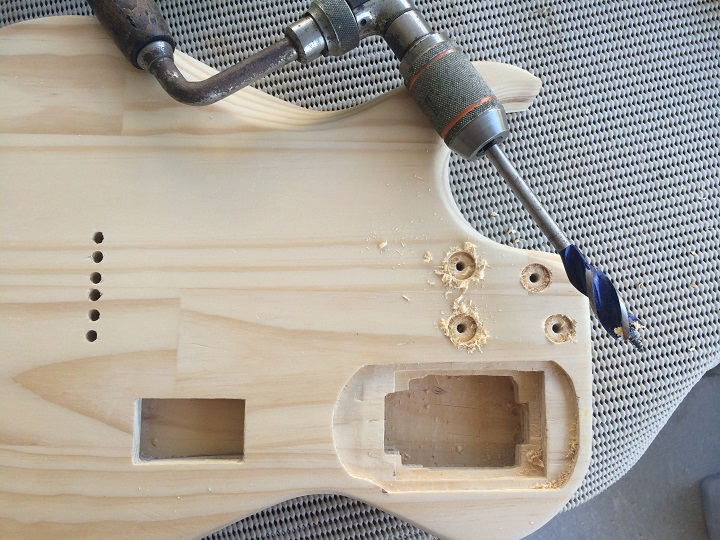 Then on to drilling out the recesses for the neck screw ferrules.