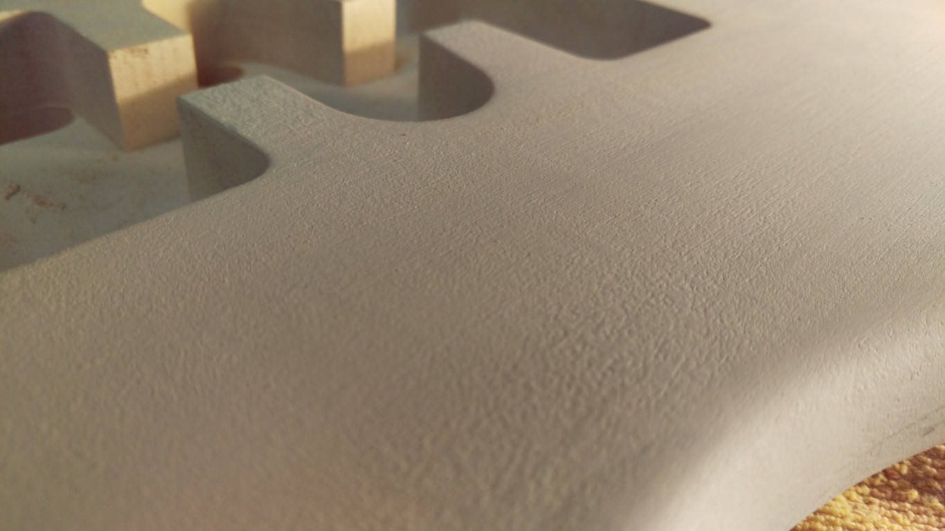 Ready to sand... to show up all the imperfections an old painters trick is to shine a light on a low angle on the surface you need to sand and presto.....imperfections galore. Id rather sand out all the imperfections at this early stage and reprime than to find something later on down the road where its a lot harder to erase.