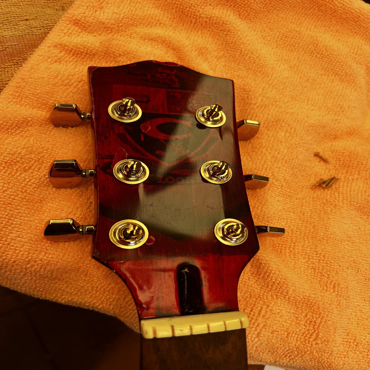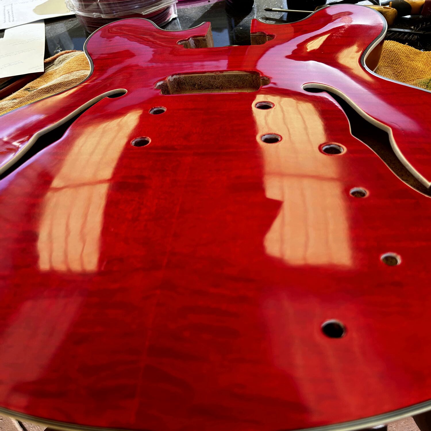 Love a bright red guitar. Also like your food colouring option, haven’t heard anyone doing that before.