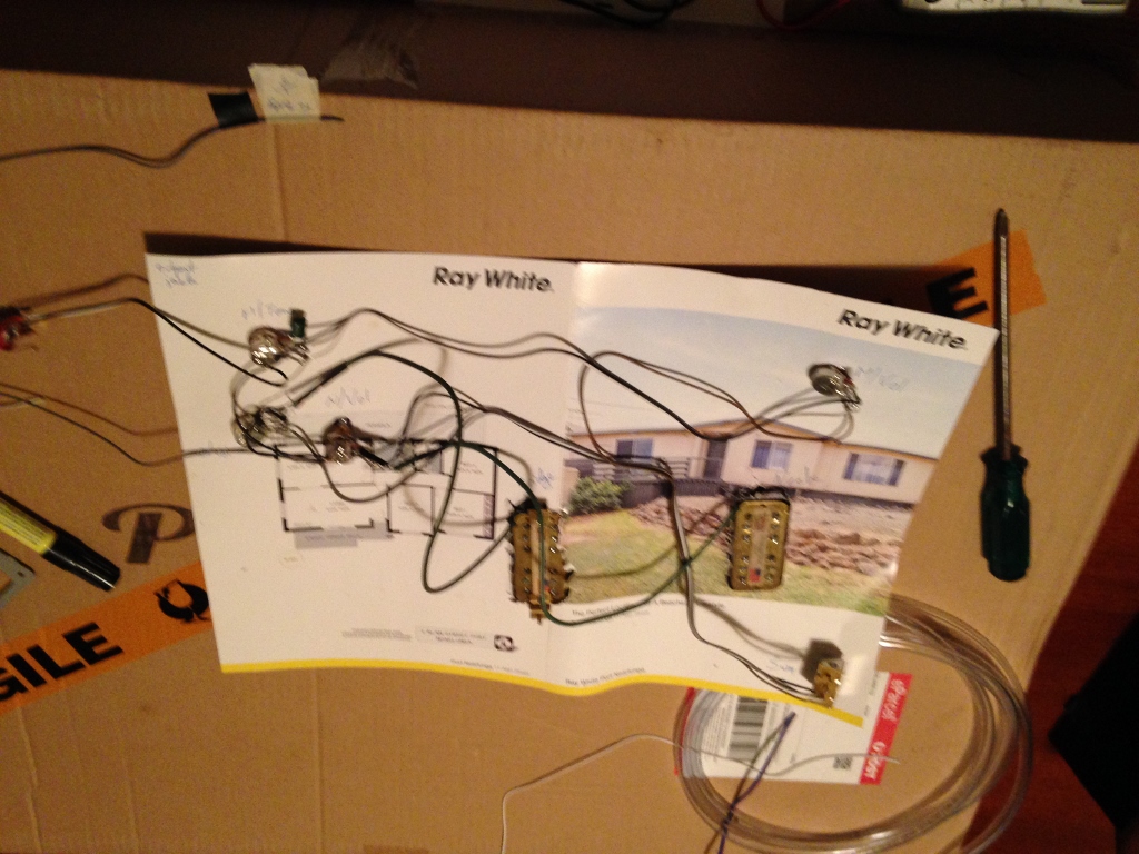 http://www.buildyourownguitar.com.au...8548&noquote=1 Yes Simon, I did tape the wires together where I could. Especially where they kept breaking: as you say, where they had to be manhandled. Waiting now for the pickup mounting bits. I'll source some strings in the meantime. Think I'll go round wound. At least for now.