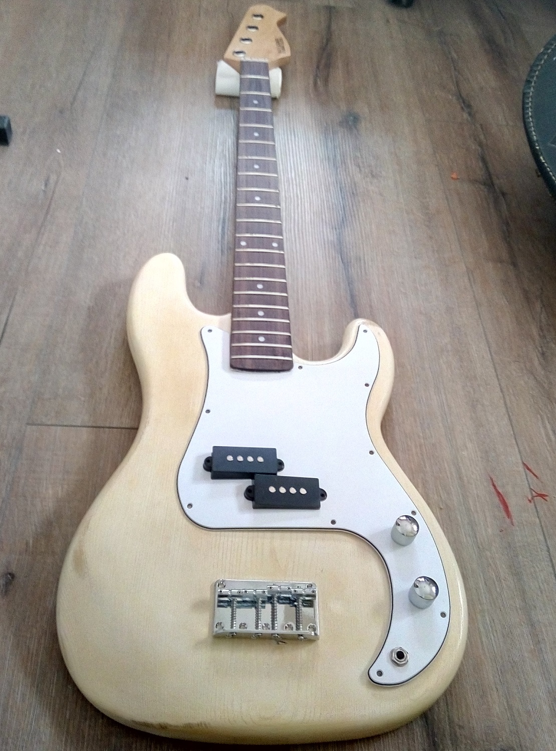 Although I really like the way it turned out - I will need to relic the other parts as well (the pick guard which is less of a problem than the hardware and the neck...), so i guess I will leave the relic for my next build and finish this one as intended, Ultra Marine blue with 3 ply black/white/black pickguard and EMG-P active pickup.