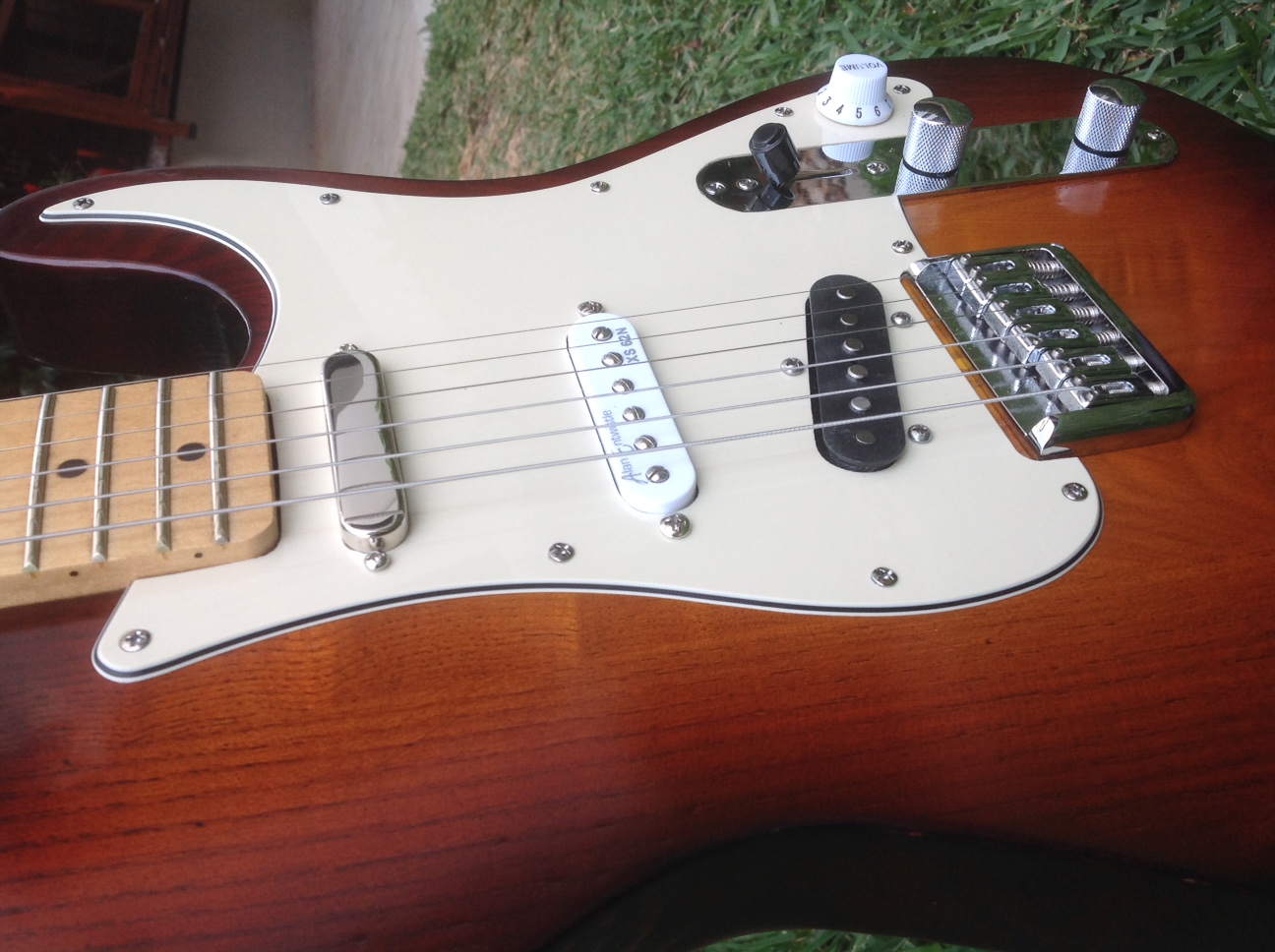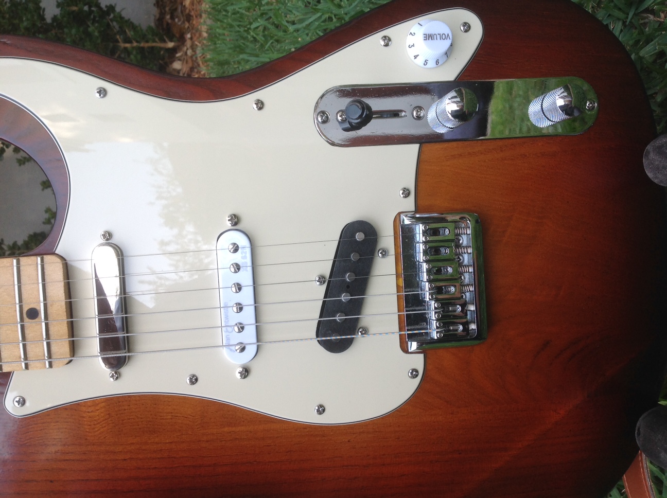 Moved the Tele control plate about 15mm back to allow the strat pickguard to fit