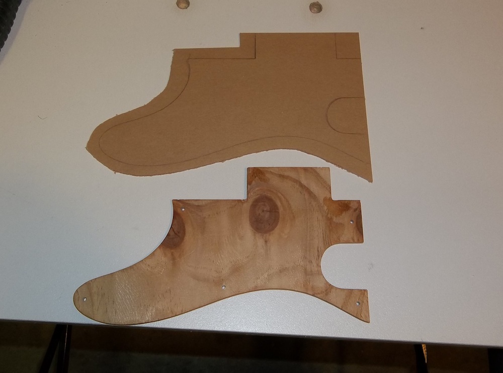 With the tweaks and mods I've made to the kit the stock pickguard is a little outside tolerance to be used as a template.