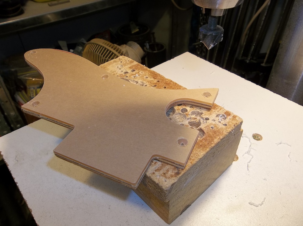 Drilling and counter-sinking holes for pickguard screws (template is still on the back).