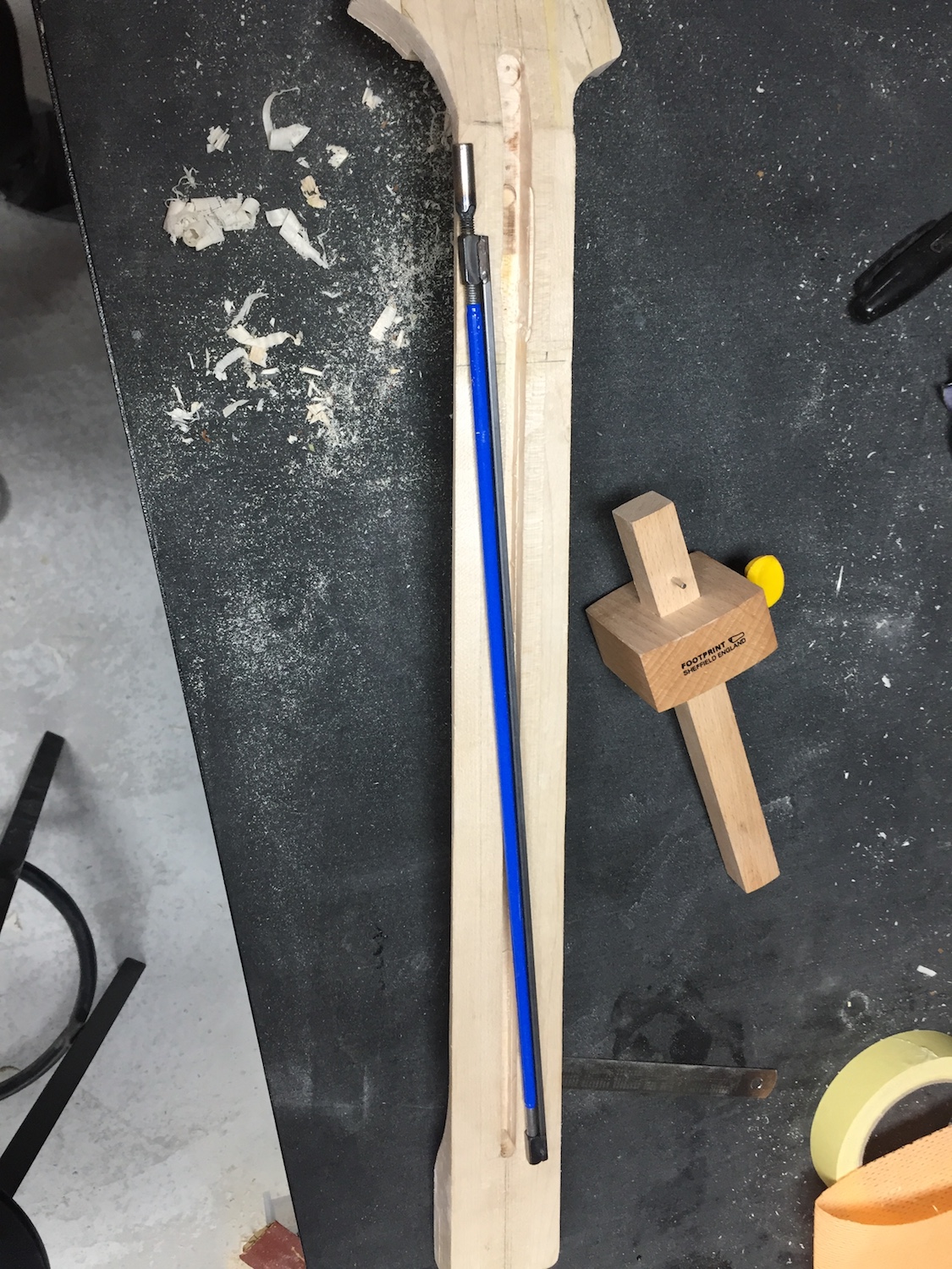 This was always an exercise in the exercise of building a neck. Given that the fundamentals of the thing are still sound, i am going to push ahead and install a truss rod and a fingerboard purely to gain the additional experience of mounting a TR, cambering a FB, fretting and possibly inlay. It is entirely possible that this will end up looking schmick, bar the obvious cock up, but i can't see machine heads mounting to it properly, and i'd imagine that if I did manage to get them on there, the head section would part company from the rest of it pretty damn quick under tension.
