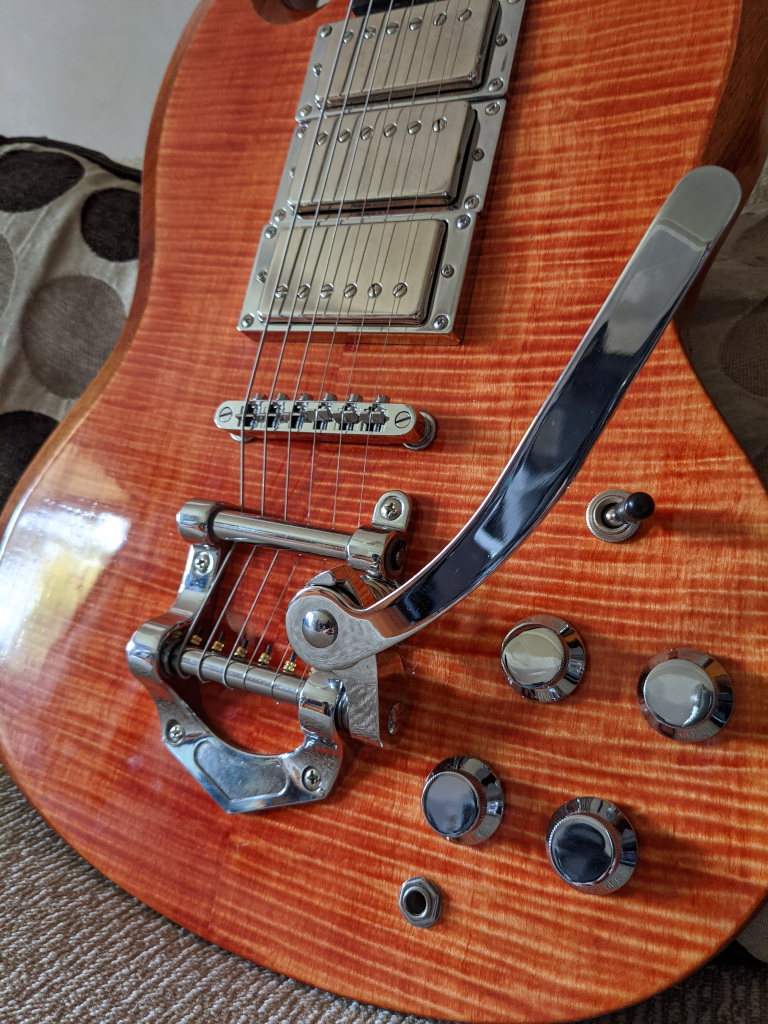 Alrighty. New knobs turned up. Plonked them on, slotted the nut because I'm getting sick of waiting for the zero glide I ordered nearly 3 months ago, fret level and a decent set of strings. Finally plays and sounds nice. Might have the action a little low but I'll wait and see how it settles in since I've gone from a set of 9's to 10's. Haven't done the intonation yet but again I'll wait until after the weekend and see if I need any other adjustments. Now I just need to learn to play decent enough to post a video demo. :-D