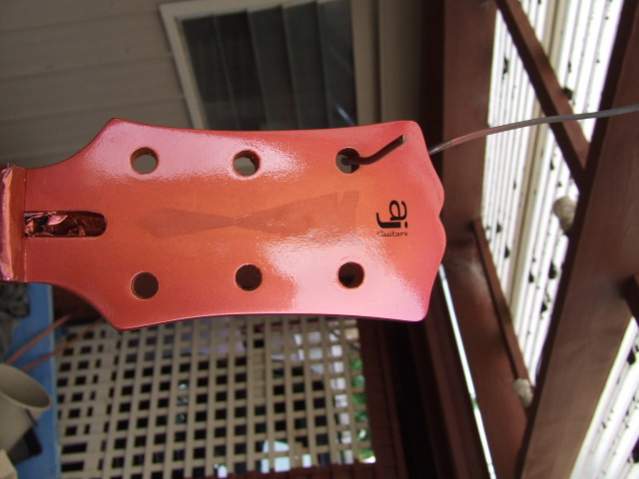 I kind of like the way the inlay looks AJ, subtle but still visible. It would be interesting to see how it looks with the tuners in place, not sure if it will highlight or hide it more with all the bling around it. The finish looks great.