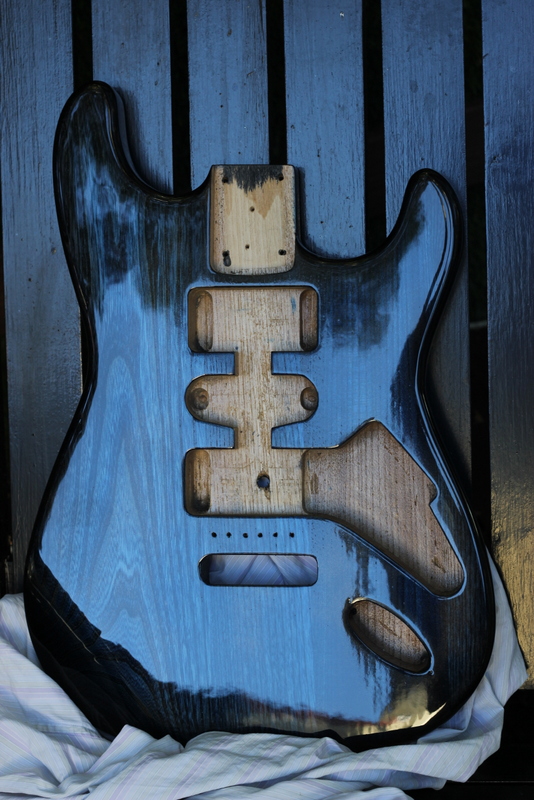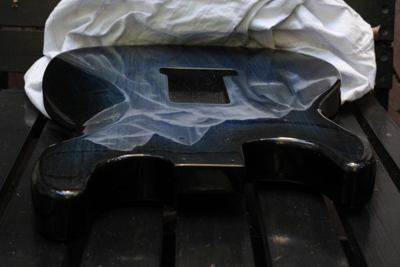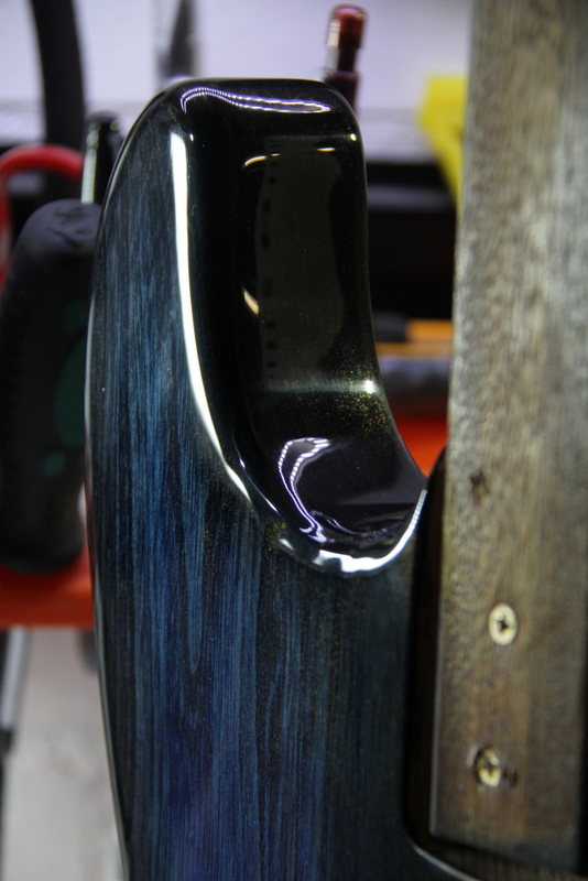I wasn't too happy with the results of my attempt to add gold mica powder in the spray a couple weeks ago, so I ended up sanding a fair bit of it. But I didn't remove it all, so it shows areas with some gold dust which I actually like on the darker parts (the edges).