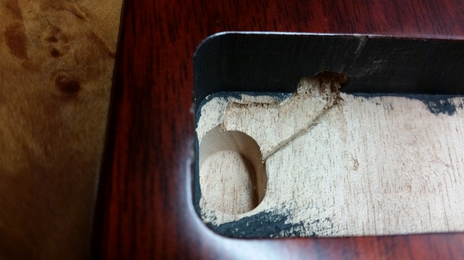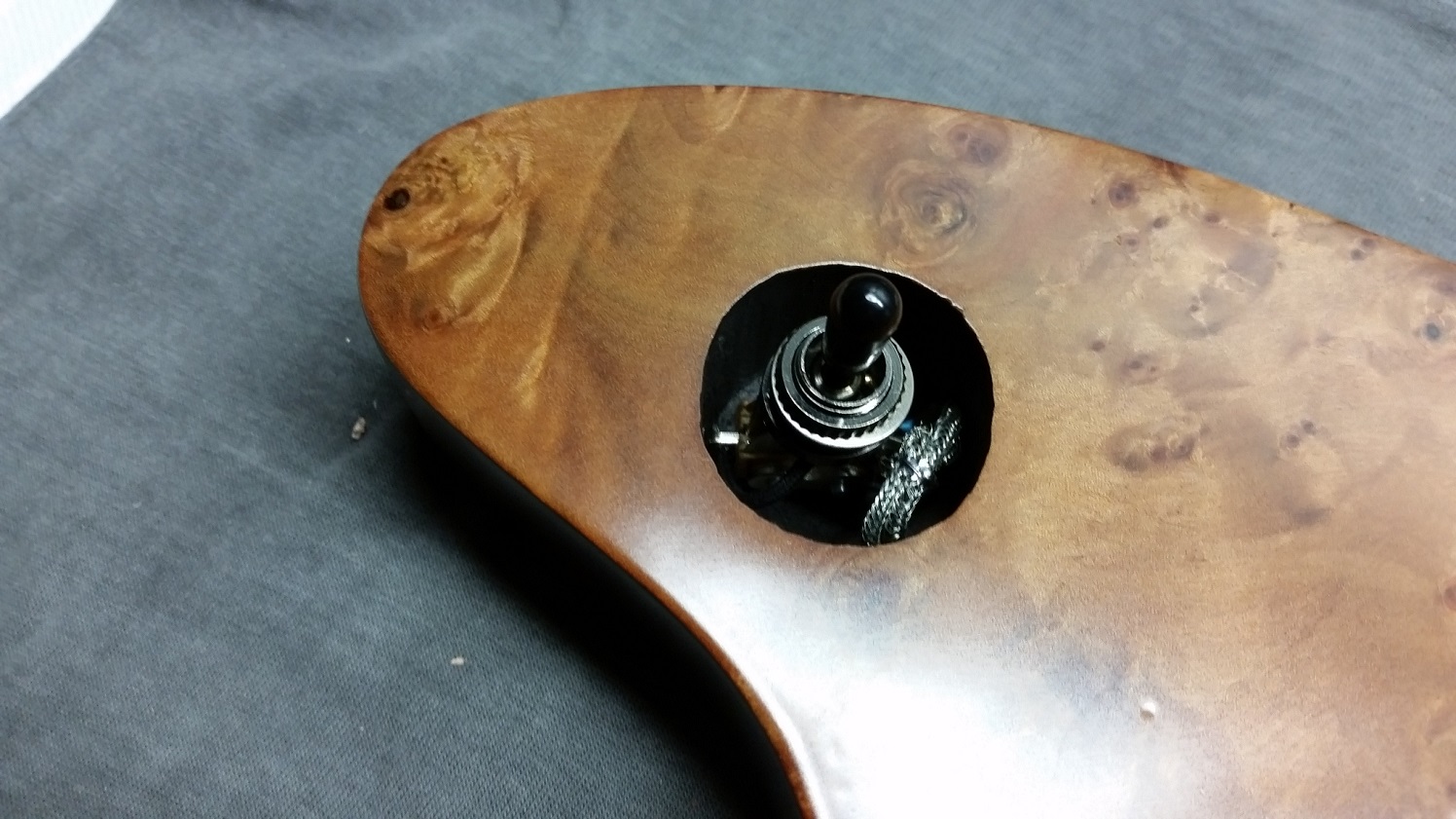 Little unsure what to do with covering the switch cavity that doesn't hide the veneer. Clear pickguard with a blackout around the switch is the current thought.