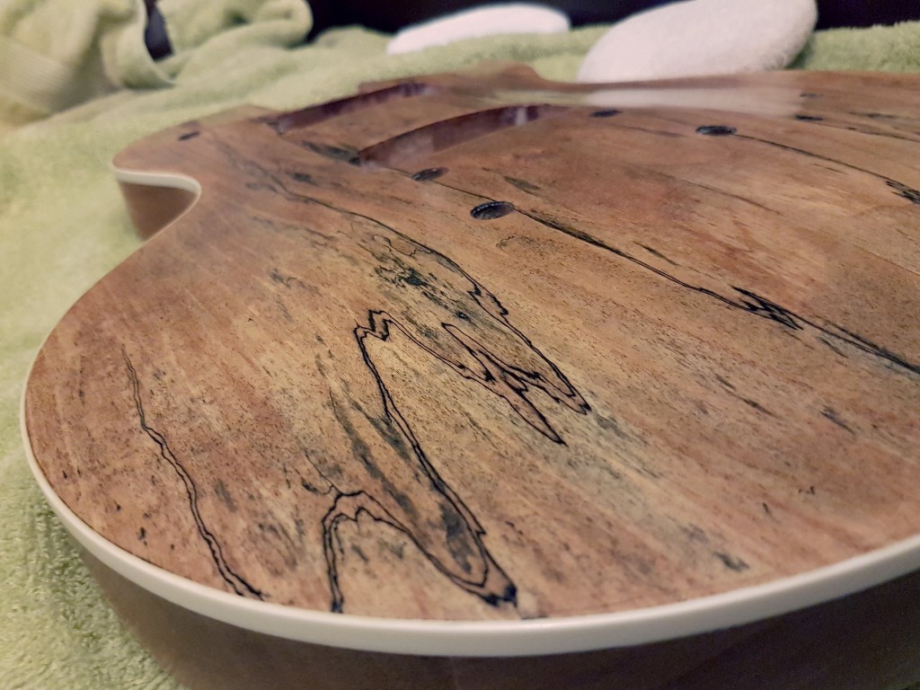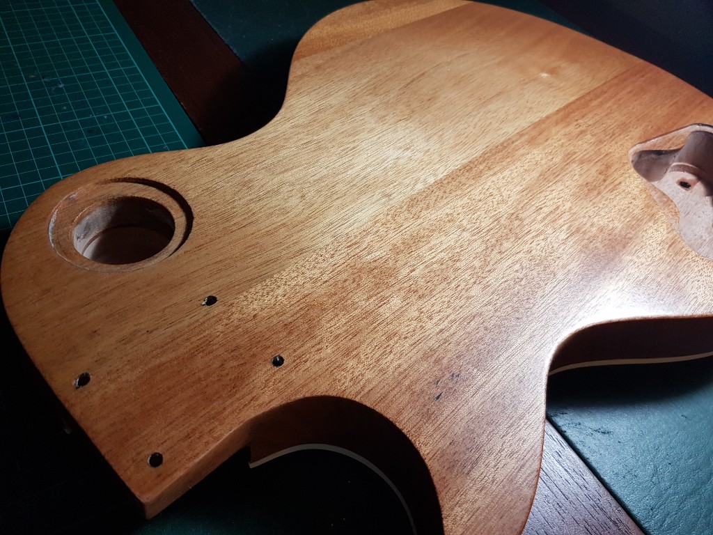 Body finished with a light sand using 1200 grit, a prelim polish with Meguiars, a good dose of Dingo wax, and a few more polishes with Meguiars ultimate to finish it off. Great semi-gloss finish. Quite shiny in the right light. Happy.