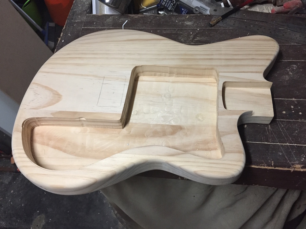 looks great Chuck, is the shape basically modelled off a Jag ? All good the routing is good practice for when you use good timber ! You don't want to take off any more material behind the bottom of the neck pocket !
