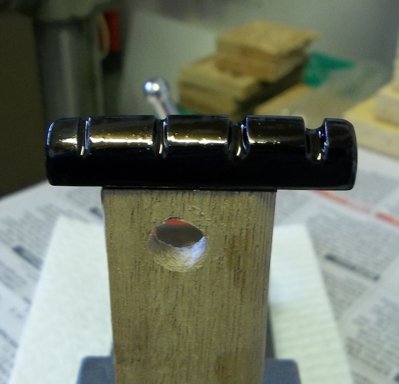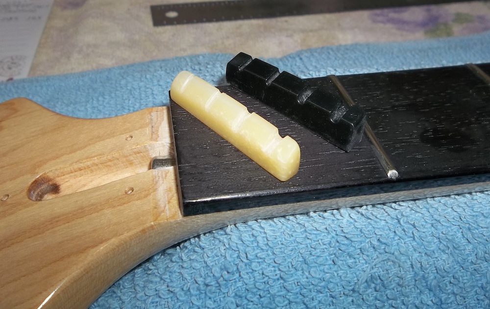 As far as my 'pre-emptive make a nut' effort went… better than I expected. The E is pretty much as low as you could hope for, A and D could maybe come down a hair and the G is probably half a hair lower than I'd want. But, I'm pleased it's as close as it is.