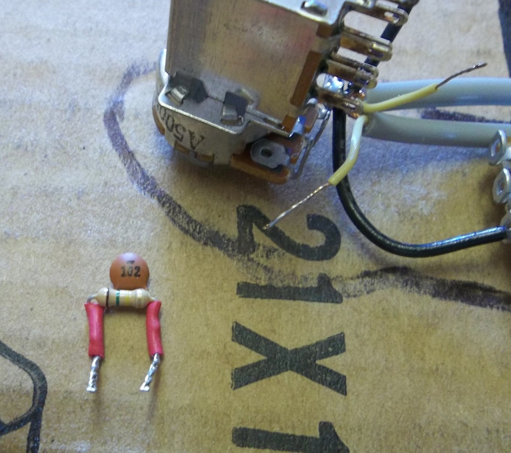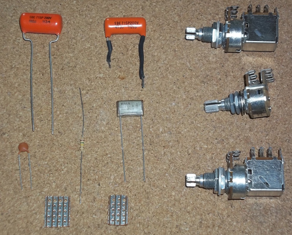 Just trying to squeeze the two large Orange Drops (0.047uF and 0.068uF) into the control cavity without interfering with anything else was going to be tough, I still wasn't sure if it was all going to fit.