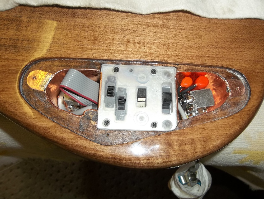 While the nut is staining and the Tru-Oil on the body and neck is hardening it was time to get to the heart of this build… the wiring.