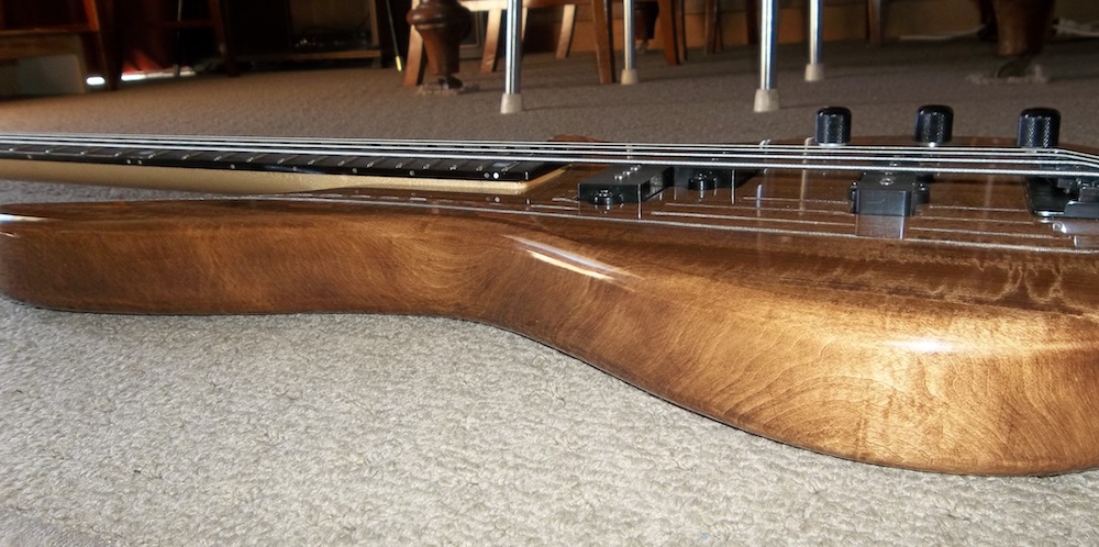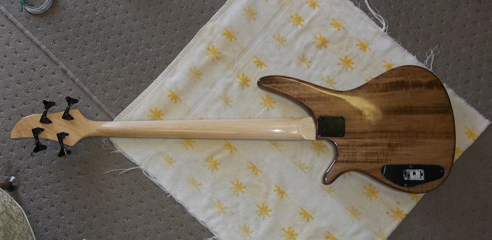 Once that was done I gave the neck a light cut and polish, just like the body. One unsettling discovery while polishing the headstock face was that the epoxy inlay takes on heat really quickly. The surrounding wood was completely cool yet the inlay was warm to the touch which is a little concerning. If it ever got too hot it may start to crack your finish. High-end marine epoxy etc. may be more stable, but just be aware if you ever decide to try it.