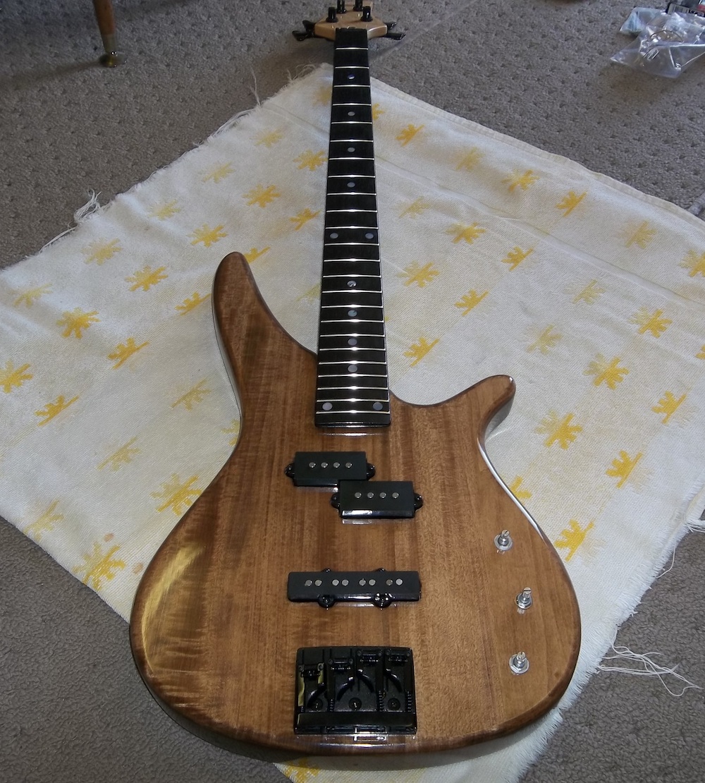 Anyway, she a Bad Girl and I'm pretty pleased with her. I'm still experimenting will all the sounds but it seems to work as intended. The series pickups setting gives a powerful dirty sound, which can be mellowed with phase changes on the P coils or flipping them to parallel. The filter switch gives a nice punchy sound with the bass cut while the treble cut knocks off some highs nicely. At least, to me. But, it's early days, I'm in no way competent to judge a bass in any respect.
