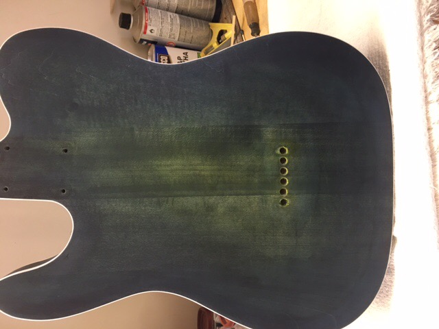 Well I drilled the string thru holes and man was that a learning experience. I had brand new bits and I had the bridge attached and drilled the outer holes all they way thru with a 2 way level on my drill. Then I drilled half way thru the other holes. Then I removed bridge and moved to the back and put two punches into the outer holes to hold it firm and drilled the other holes, which worked very good. Pretty straight... but then I marked the depth on my larger bit for the ferrules and started to drill the first and got a huge tear out. I had never drilled basswood before man it is soft. So I proceeded to put tape on the body and marked the holes and tried the other outer and still got some tear out so I drilled the rest with the drill in reverse and that worked great. So I had to get out the good ol timbermate and fix my good ups. And then re stain.