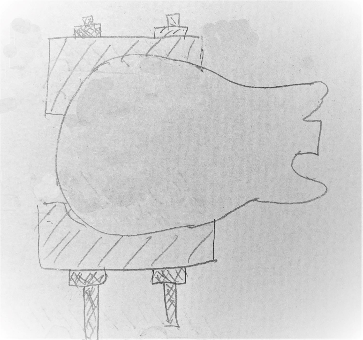 Use the outline of the body as a template to draw out the shape on some wood, and cut it out with a jigsaw or coping saw. You don't need to be super accurate, just good enough so that it fits around the body shape.