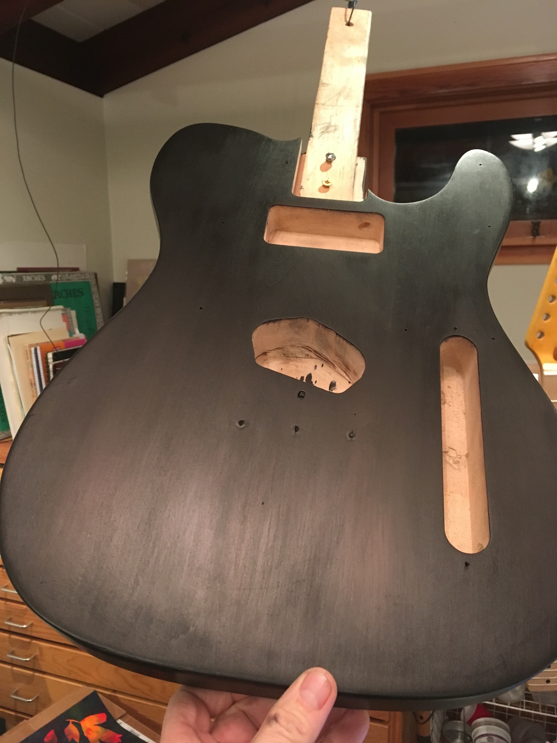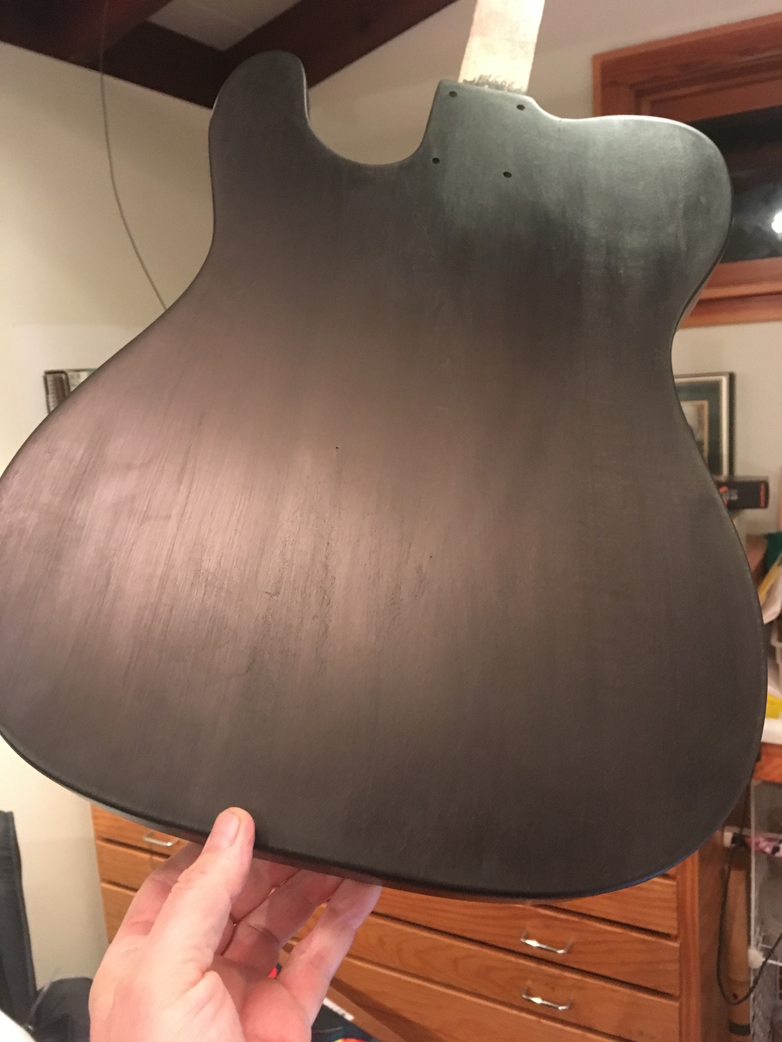 Well, it looks like I’ve totally made a dog’s dinner of this. I tried to sand it a bit after I’d already put too much stain into the wood—like sanding toffee—and now it’s marked up like a ski slope in January. I don’t like the Tried and True oil either, as it just seemed to leave the surface greasy. Maybe I’ll just have to bite the bullet, sand the whole thing down deep, and rattle-can it. sigh…