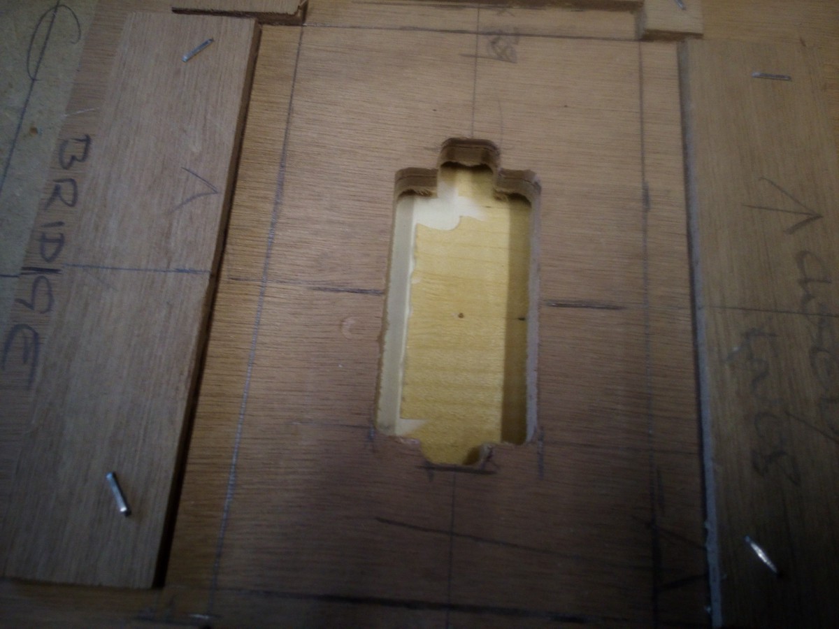 First I routed through the 3mm ply backing. Then relocated some of the ply strips to resolve the errors I made locating them in spite of my careful measurements.