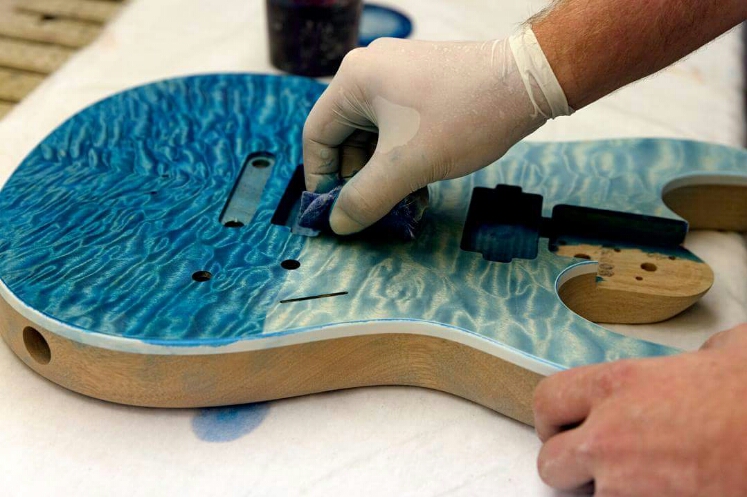 It's nice looking, but not really my cup of tea. The trouble is that there are so many similar guitars out there with pretty finishes just aimed at people with high disposable incomes. But I was more taken with the fact that that they'd issue a promo picture showing bad workshop practice. OK, the back is also blue (but a darker blue), but consistency and care should be paramount in the production of a high-end guitar.
