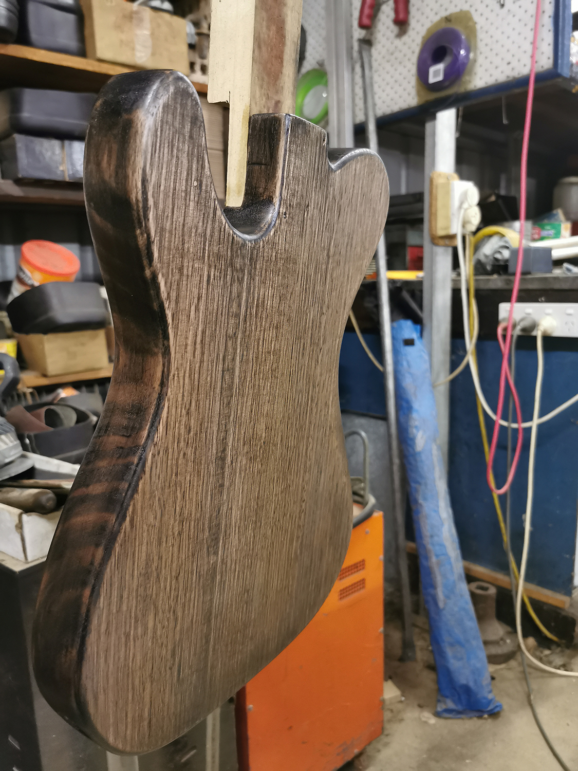 I'm trying to keep dust down due to my living situation. I probably could have run a cable out to a distant corner of the property and set myself up, but it seemed like less effort to do it this way. It definitely wasn't less effort. Kind of fun though, I really enjoy making shavings.