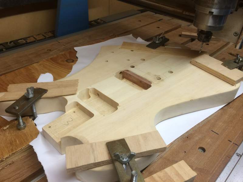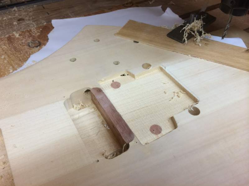 that meant doing 2 things, option one was to forget the floyd rose and pay the guy 70 bucks for his efforts or.. option 2 was to move the bridge cavity forward 10-15 mil and chock up that pickup cavity. of course i decided to go with option 2. meaning i was going to have some patchy looking wood on it meaning the stain was going to end up looking like absolute crap. so instead of staining it like i originally wanted to, im going a solid colour, still probably a red. good thing i didnt order that custom colour from DB huh?