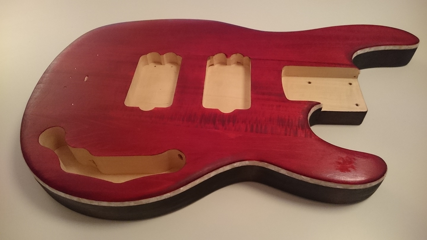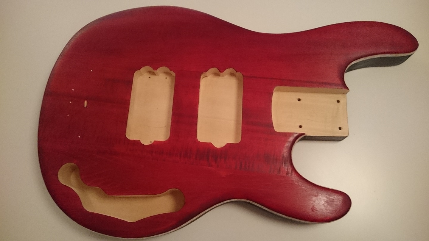 So far I've put on the red on body top and headstock as well as "victorian walnut" on the sides and back of the body. So far haven't had the time to post pics but will soon enough.