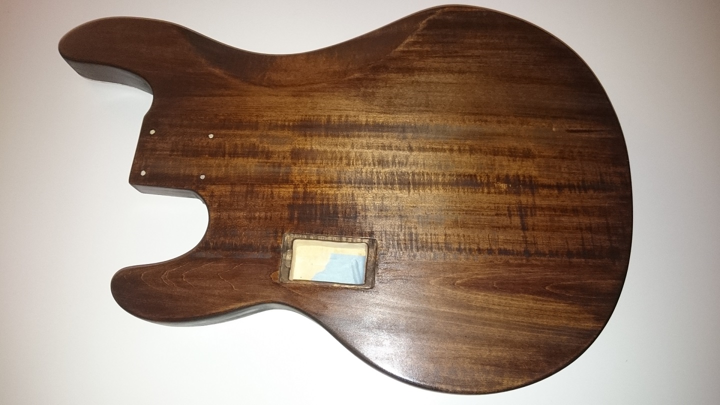 TO finish is coming up slowly but anyway. The neck has about 6 or 7 coats and body about the same. Should be able to do the first TO wet sandind later this week. Canīt do more than two coats a day at home - only possible after the kids are asleep. Frustrating at times but should have the finish ready in couple of weeks. Then itīs Pickguard and assembly time... :)