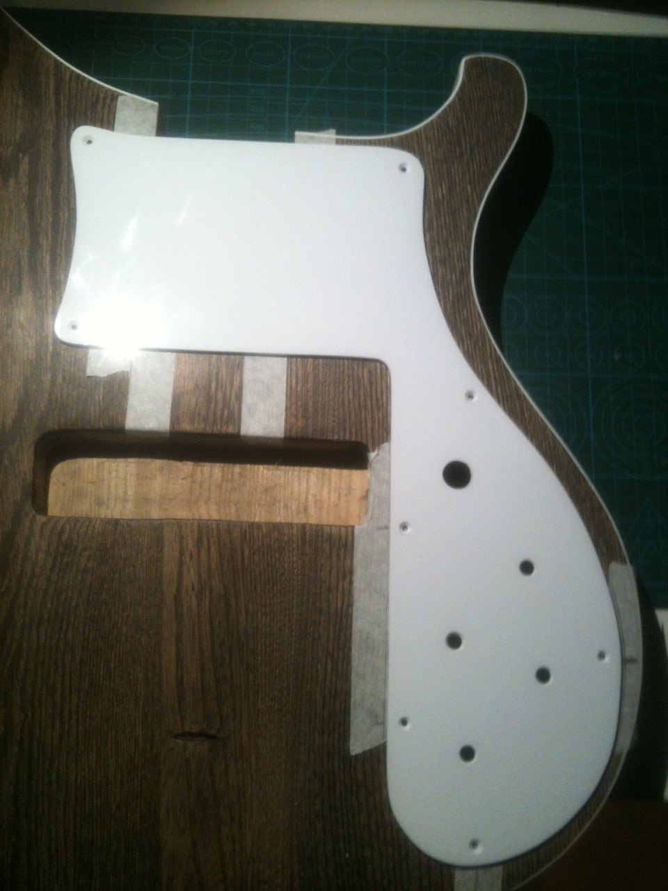 making some pickguard holes, and final touches to the pickguard sides. Only lefting pickup cavity and polishing.