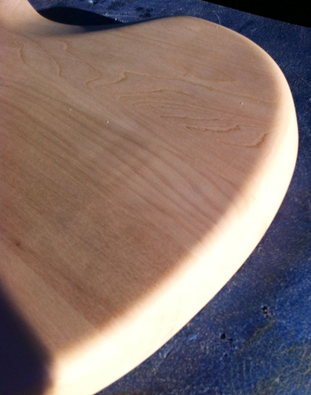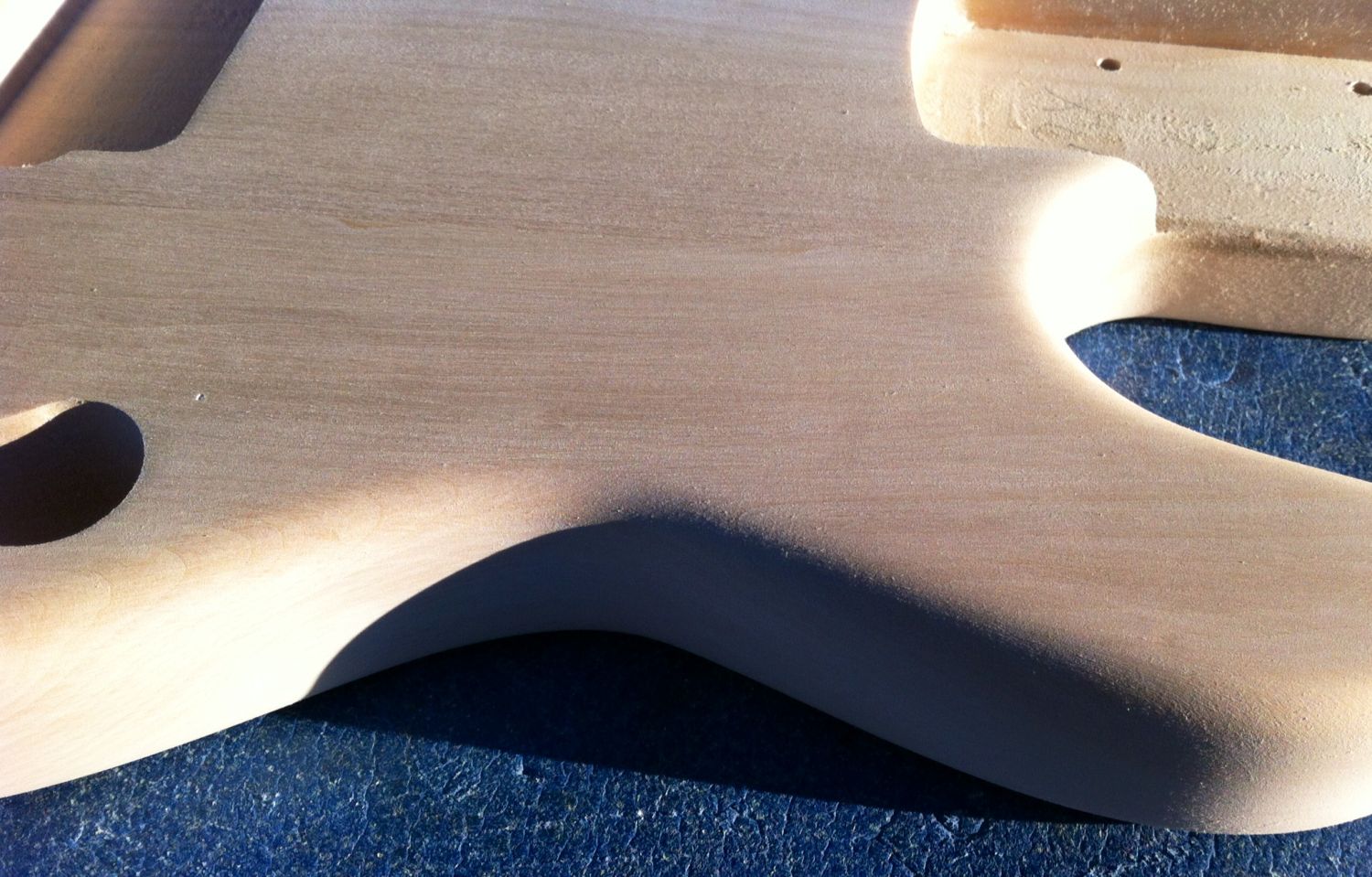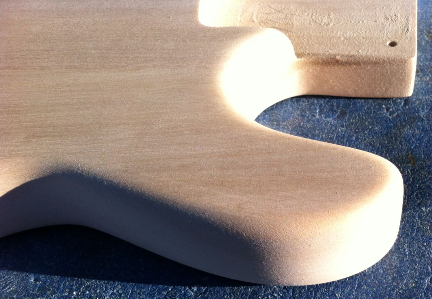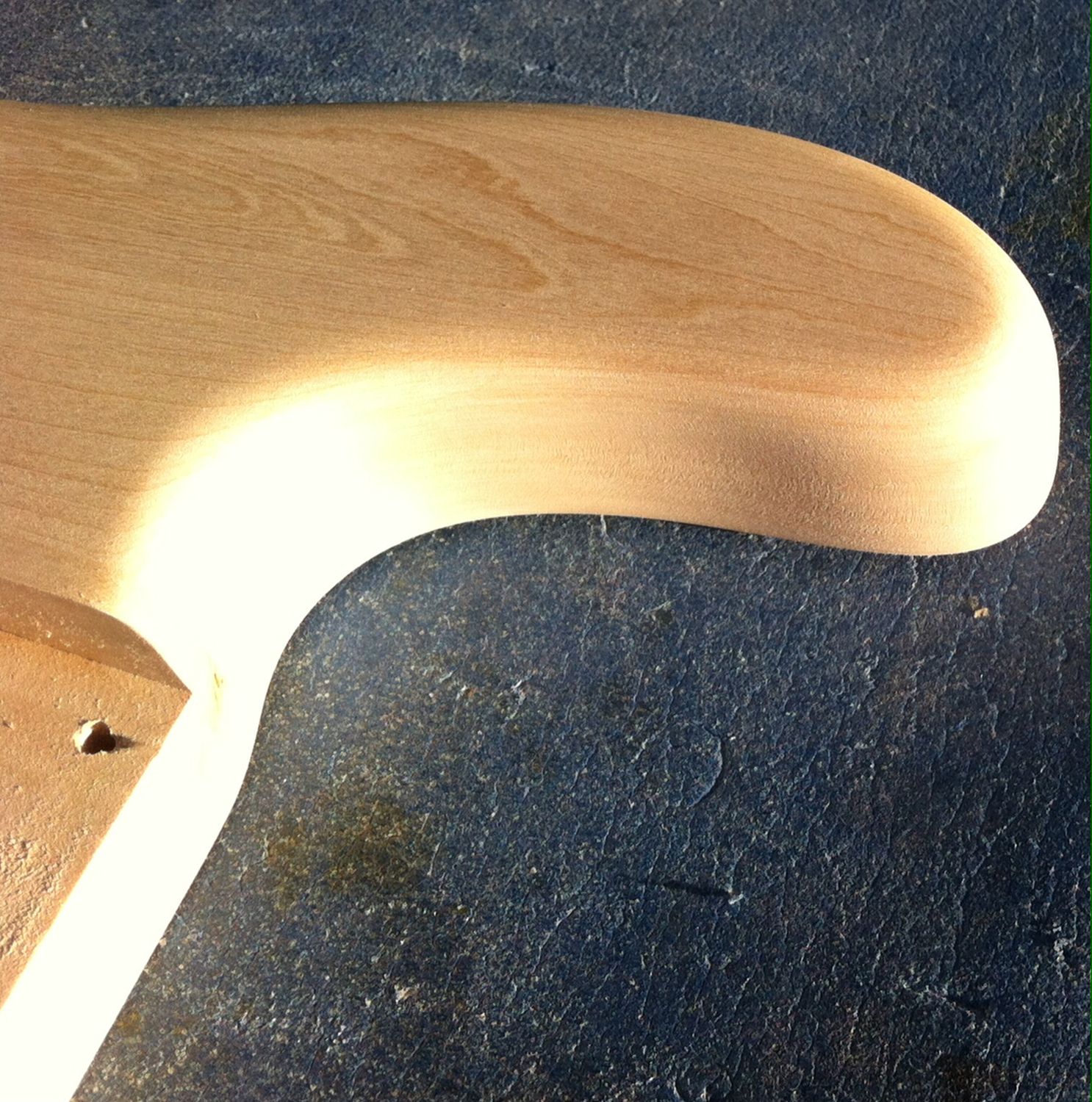 When ordering the kit Adam sent me photos of a couple and chose this one as there was more grain and I wanted to do a natural finish without the oval pick guard. Coming along nicely and happy to keep sanding away until those curves are just right.