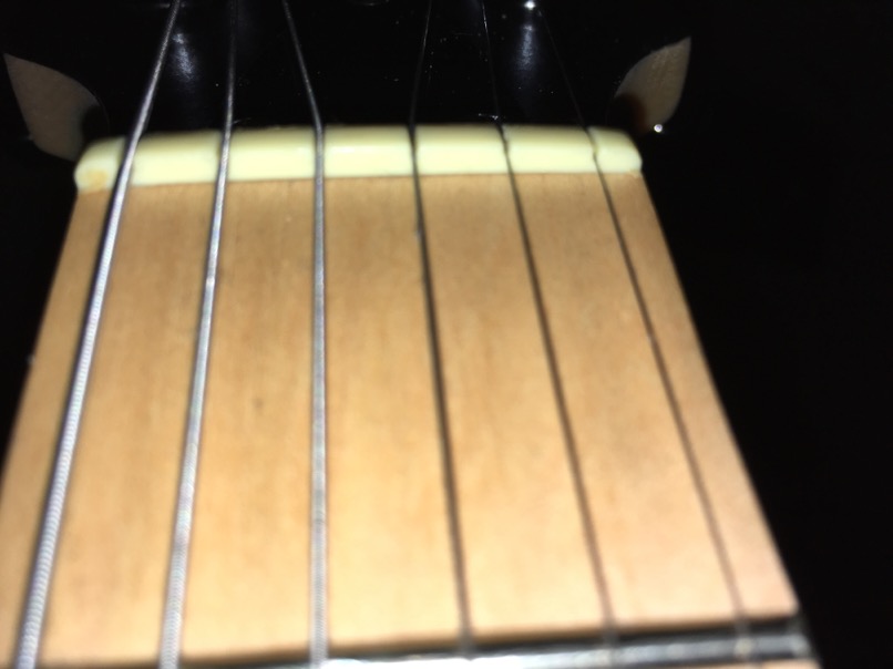 I reshaped the bottom of the nut to make it fit closer up the the fretboard, as there was a bit of a gap, as in the nut was leaning back a bit, touching at the bottom but not at the top. In doing so I've obviously lowered where the strings sit.