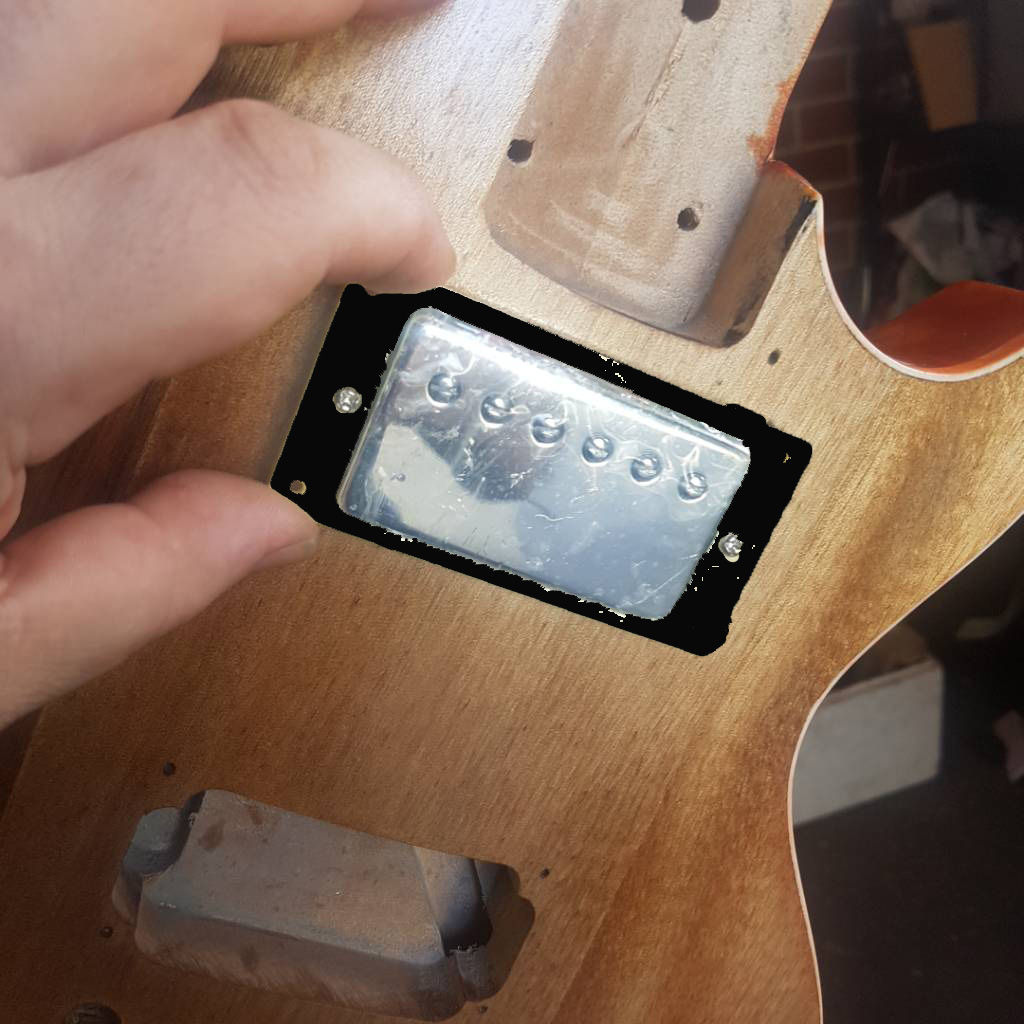 I reckon the guitar will look great with black pickup rings, I love the contrast between the colour of the stain used on the back and the natural wood colour on the front, quite pleasing.