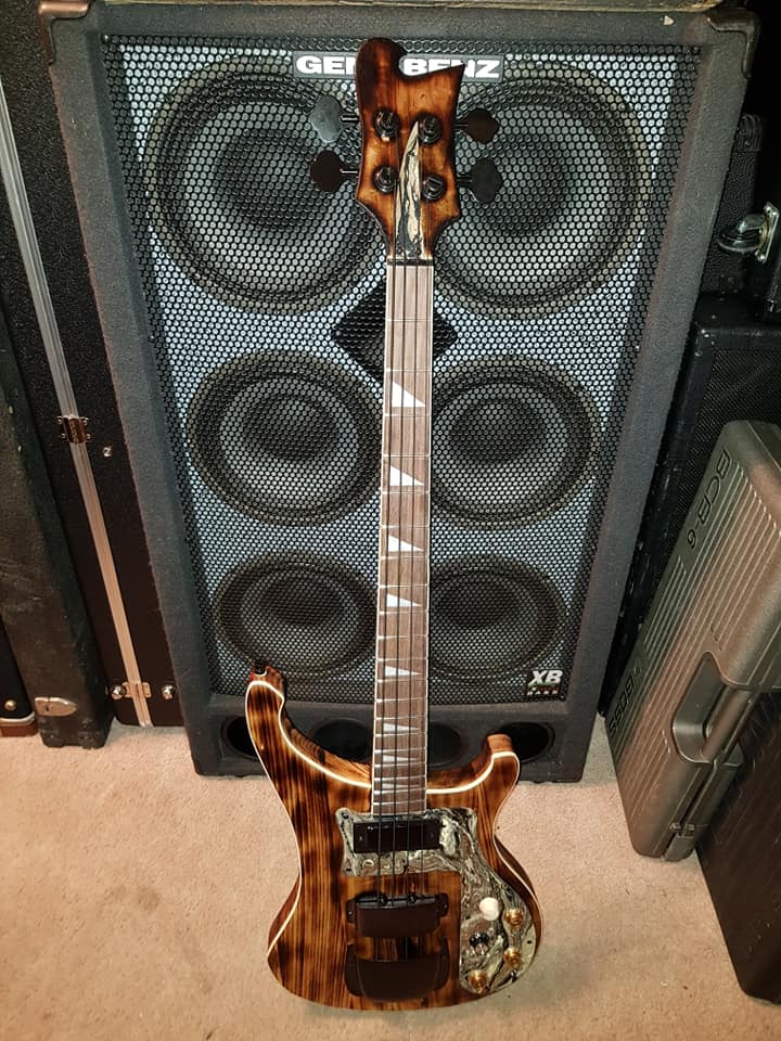 What an inspired build with a totally unique and brave finish, this bass could easily have finished looking like a piece of burnt toast rather than a work of art.