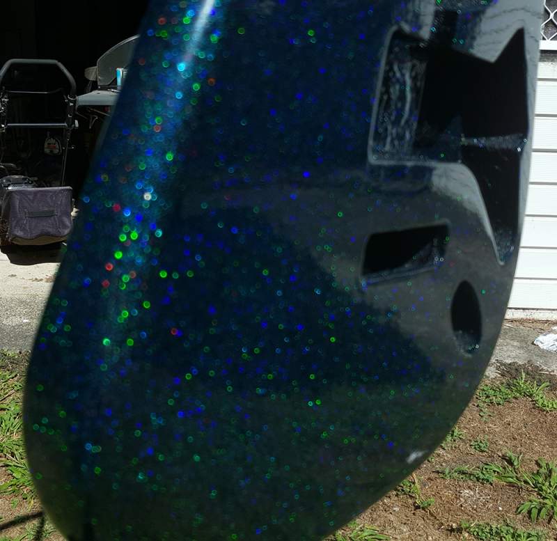 I can see why it would be hard to photograph, because the surface is so reflective. You can see your background is perfectly in focus, but the body of the guitar not so much.