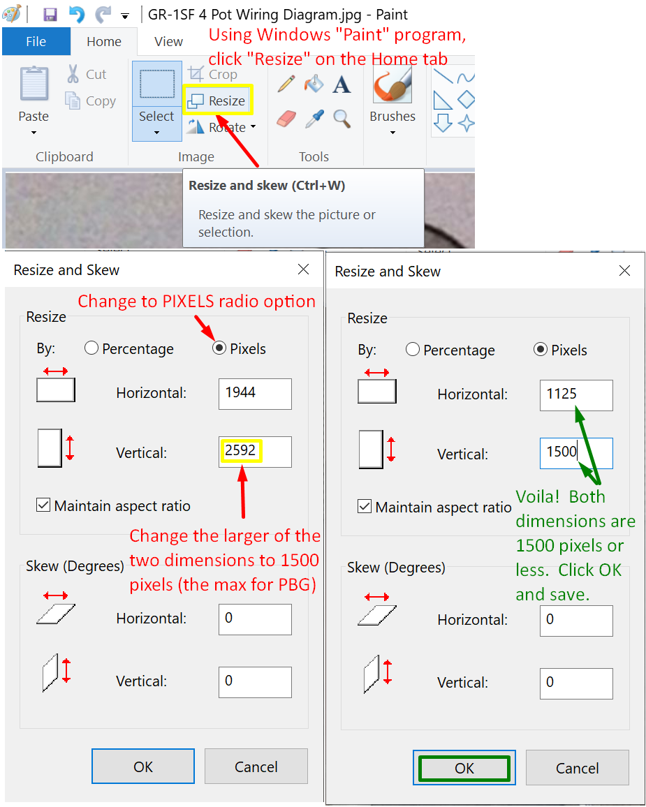 Here's the simple way to resize images if using Windows Paint: