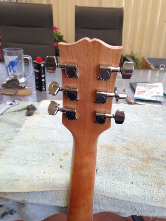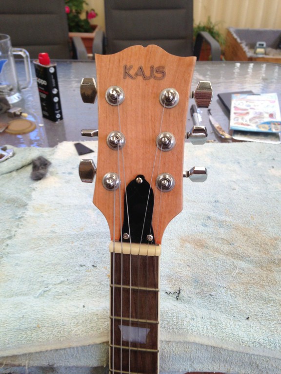 I originally had a star type ground and then realized when I stuffed it all through the F hole, the ground star would be staring at me through the F hole, could have still done it, but using the bridge volume pot seemed simpler if uglier.