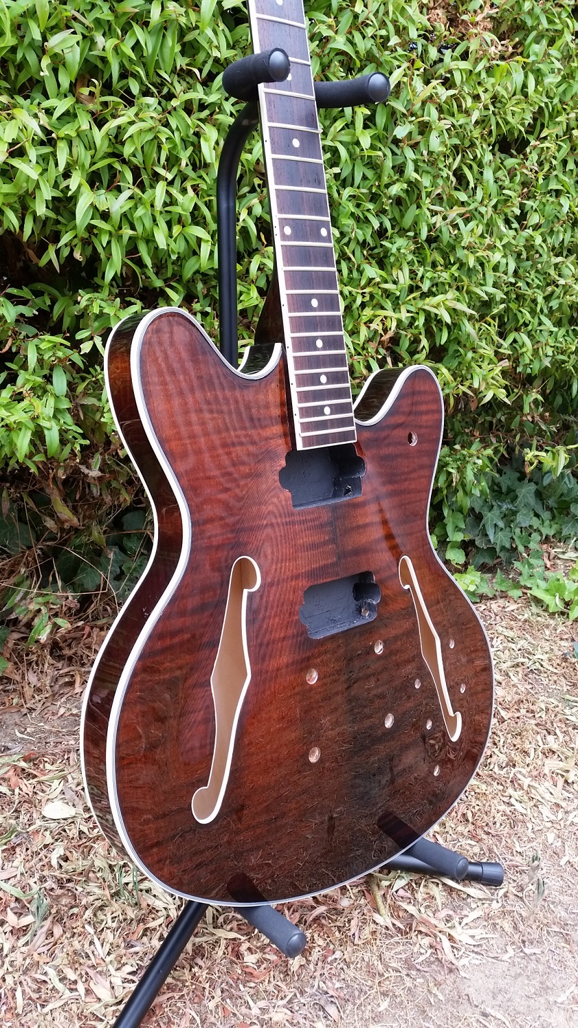 I'm not a hollow body guy, but I am seriously tempted by this kit. Looks like the body is a reasonable thickness and I really like the shape and headstock.