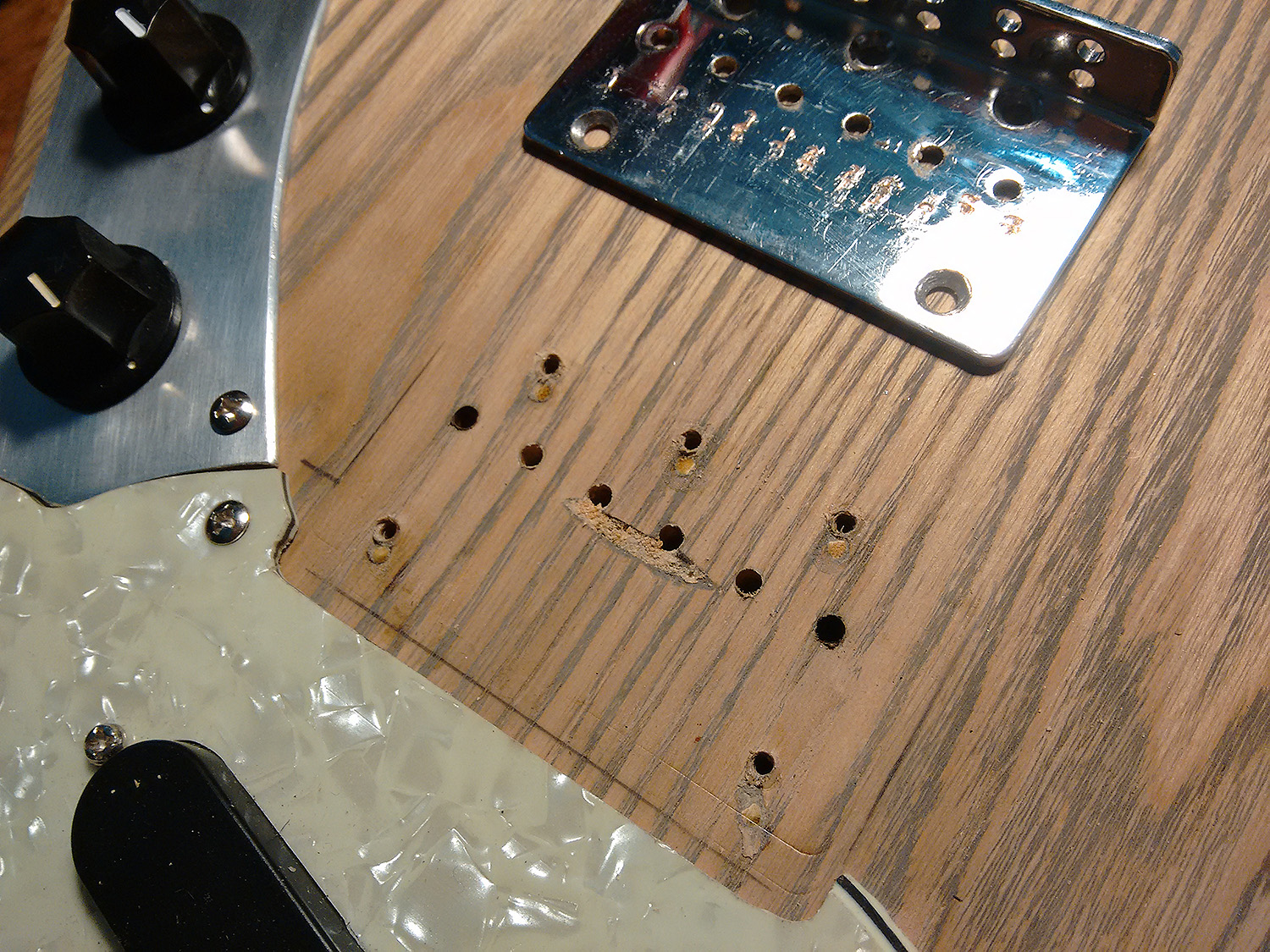 Drill guide worked quite well. Both holes 52mm apart on the back. Same as the bridge spacing. Hooray!!